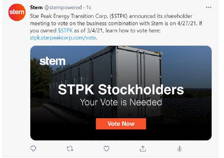 The following communication was made available by Stem, Inc. on Twitter on March 29, 2021: