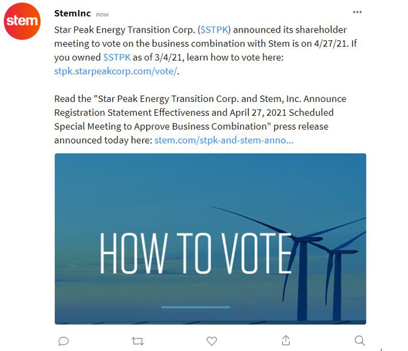 The following communication was made available by Stem, Inc. on StockTwits on March 29, 2021:
